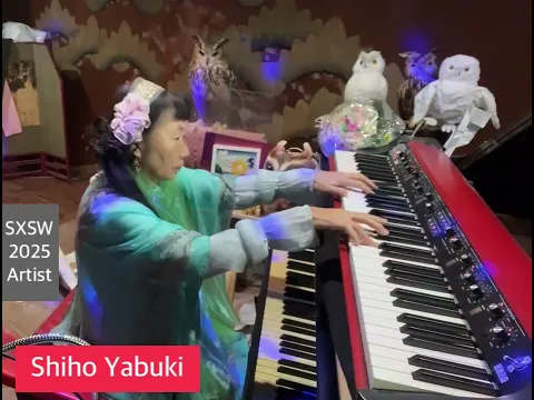 観客から頂いたユニコーンをイメージして、即興しました。観客がユニコーンをかぶって踊り出すなど、観客と舞台が一体となりました。SXSW2025年矢吹紫帆は、伝説のピアニストと絶賛されました